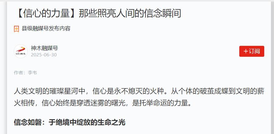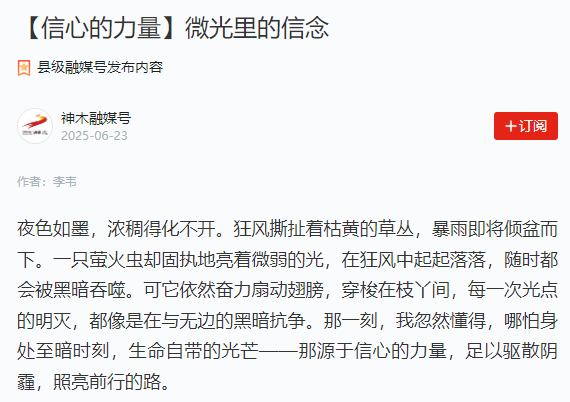 學(xué)習(xí)強(qiáng)國(guó)丨榆北涌鑫公司:【信心的力量】那些照亮人間的信念瞬間
