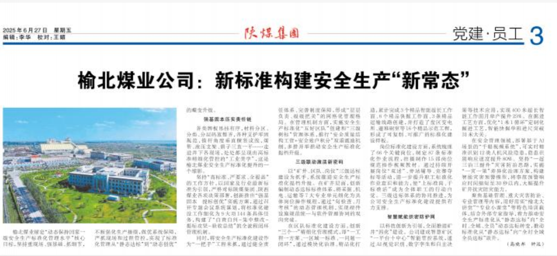 陜煤集團(tuán)報(bào)丨陜煤榆北煤業(yè):新標(biāo)準(zhǔn)構(gòu)建安全生產(chǎn)“新常態(tài)”