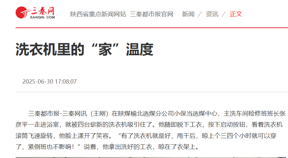 三秦都市丨榆北選煤分公司:洗衣機(jī)里的“家”溫度