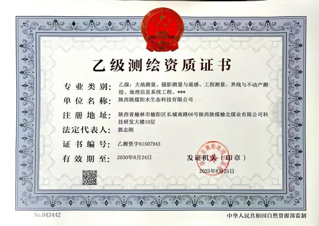 近日,陜西省測繪信息局正式批復(fù),陽木生態(tài)公司成功取得乙級測繪資質(zhì)...