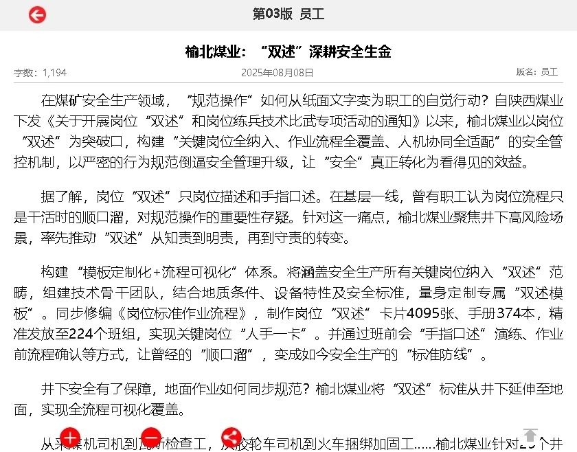 中能公司積極落實(shí)榆北煤業(yè)公司黨委書記、董事長(zhǎng)、總經(jīng)理雷亞軍調(diào)研工作要求,以全員導(dǎo)師制為引擎,在安全規(guī)范、機(jī)制構(gòu)建、創(chuàng)新創(chuàng)效等方面連出實(shí)招,助推企業(yè)高質(zhì)量發(fā)展?!半p述”聯(lián)動(dòng),鑄就安全標(biāo)準(zhǔn)鐵軍該公司把標(biāo)準(zhǔn)化操作鍛造成員工的“肌肉記憶”。崗位“雙述”讓員工在班前會(huì)系...