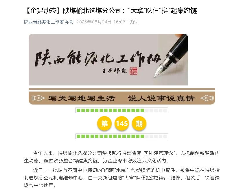 近日,陜西省能源化學地質工會公布2025年“工人先鋒號”名單,選煤分公司曹家灘選煤中心主洗二班上榜。近年來,該班組先后獲得陜煤集團班組大賽暨勞動者講述二等獎、2025年榆林市班組建設大賽二等獎等榮譽。創(chuàng)新推行“兩提一優(yōu)”工作法,圍繞技能培育提升,構建“理論學習+實操訓...